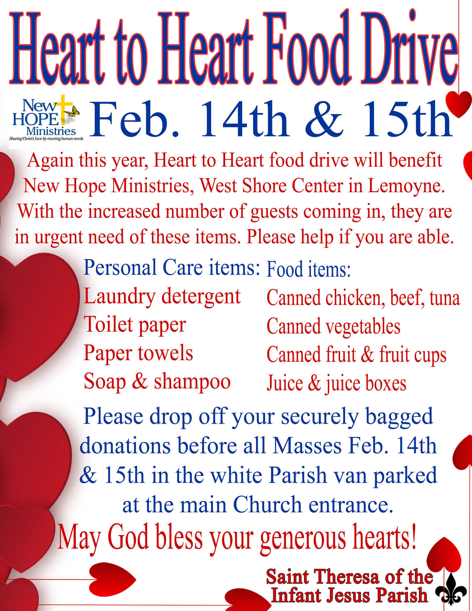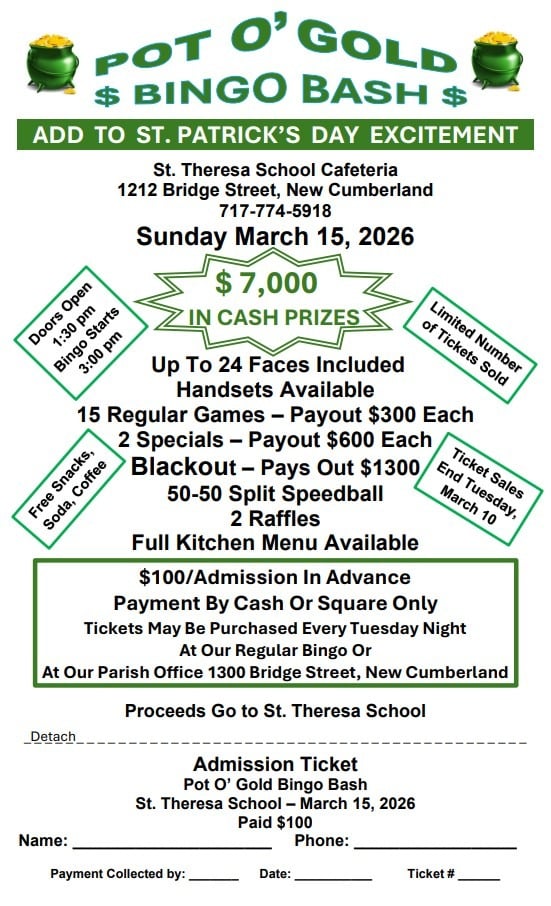 What a joy to be with you as the eighth pastor of St. Theresa of the Infant Jesus Parish! For nearly one-hundred years our community has stood on Bridge Street of New Cumberland to shine the light of Christ to our community and beyond through our worship of God, service to the poor, education of young and old alike, and the many opportunities of Christian fellowship and support.